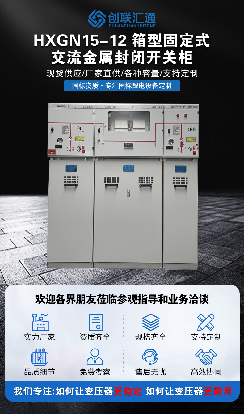 HXGN15系列是新一代以六氟化硫開關(guān)(SF6)作為主開關(guān)而整柜采用空氣絕緣、適用于配電自動(dòng)化,既緊湊又可擴(kuò)充的金屬封閉開關(guān)設(shè)備。具有結(jié)構(gòu)簡(jiǎn)單、操作靈活、聯(lián)鎖可靠、安裝方便等特點(diǎn),對(duì)各種不同的應(yīng)用場(chǎng)合、不同的用戶要求均能提供令人滿意的技術(shù)方案。