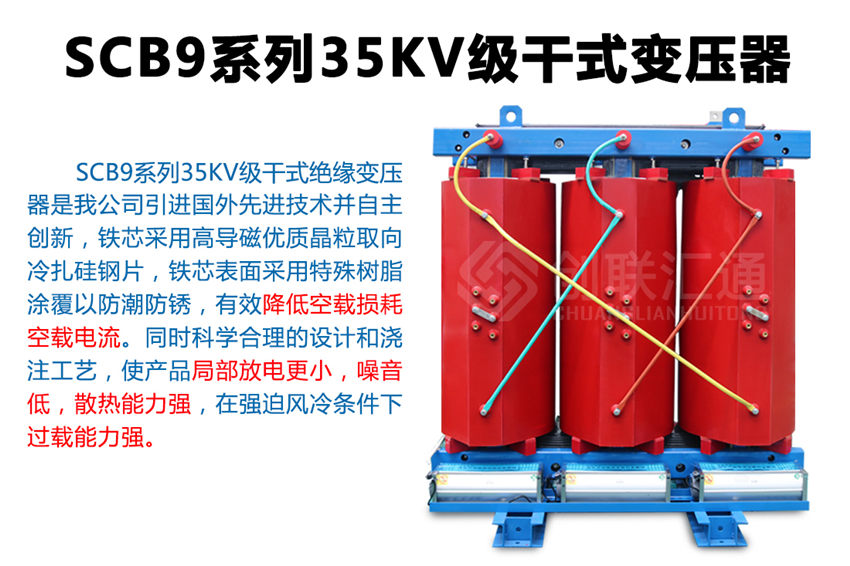SC(B)9系列35KV環(huán)氧樹脂干式變壓器新一代節(jié)能產(chǎn)品,該系列配電變壓器產(chǎn)品使用在變壓器電壓直接從35KV電網(wǎng)轉(zhuǎn)變?yōu)?00V配電的特殊場合,可減少10KV輸變電環(huán)節(jié),使運(yùn)行維護(hù)費(fèi)用明顯降低。35KV級無勵磁調(diào)壓配電變壓器產(chǎn)品通過了家級鑒定,確立為高新技術(shù)產(chǎn)品。 產(chǎn)品具有損耗低、阻燃性好、承受短路能力強(qiáng)、體積小、噪音低、耐雷電沖擊性能好,溫度分布均勻等優(yōu)點(diǎn),而且由于環(huán)氧樹脂干式變壓器不使用變壓器油,不會產(chǎn)生油污染,無爆炸危險。產(chǎn)品可作為配電變壓器廣泛適用于電力系統(tǒng)城網(wǎng)改造,也可用于高層建筑、機(jī)場、車站、港口、地鐵待對消防、環(huán)保有嚴(yán)格、特殊要求的多種場合。