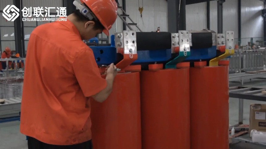 創(chuàng)聯匯通專業(yè)變壓器生產廠商為您實拍變壓器生產流程,實力廠家,精準工藝,看到見,摸得著。1000KVA干式變壓器完工前螺栓緊固。