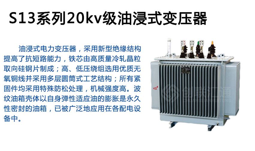 S13系列20kv級油浸式變壓器使用用于電力系統(tǒng),在工礦企業(yè)、農業(yè)和民用建筑、交通、郵電部門,同時在機電五金行業(yè),紡織家具制作業(yè),電焊機,數(shù)控機床,工業(yè)自動化成套設備中普遍應用,起著不可代替的作用。