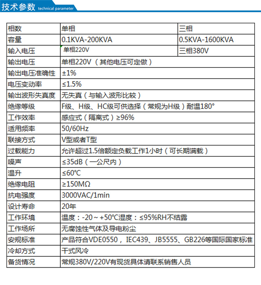 【額定容量】:0.1-1600kva     【額定電壓】:220v